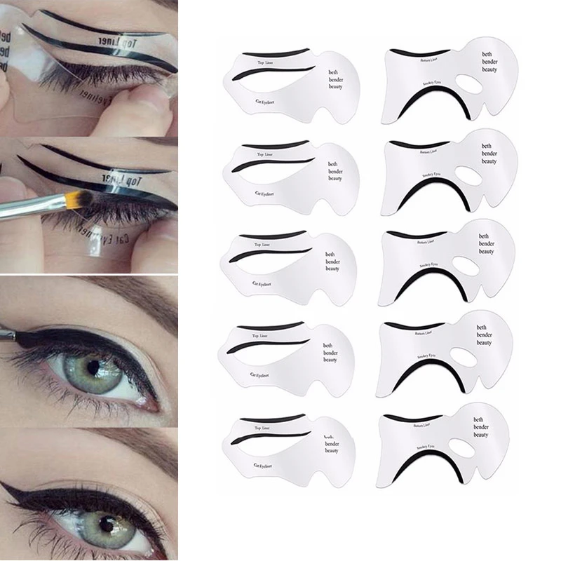 10 шт. профессиональный подводка для глаз трафареты для теней Крылатая подводка для глаз трафарет модели формирующий шаблон инструменты брови шаблон карты Макияж инструмент
