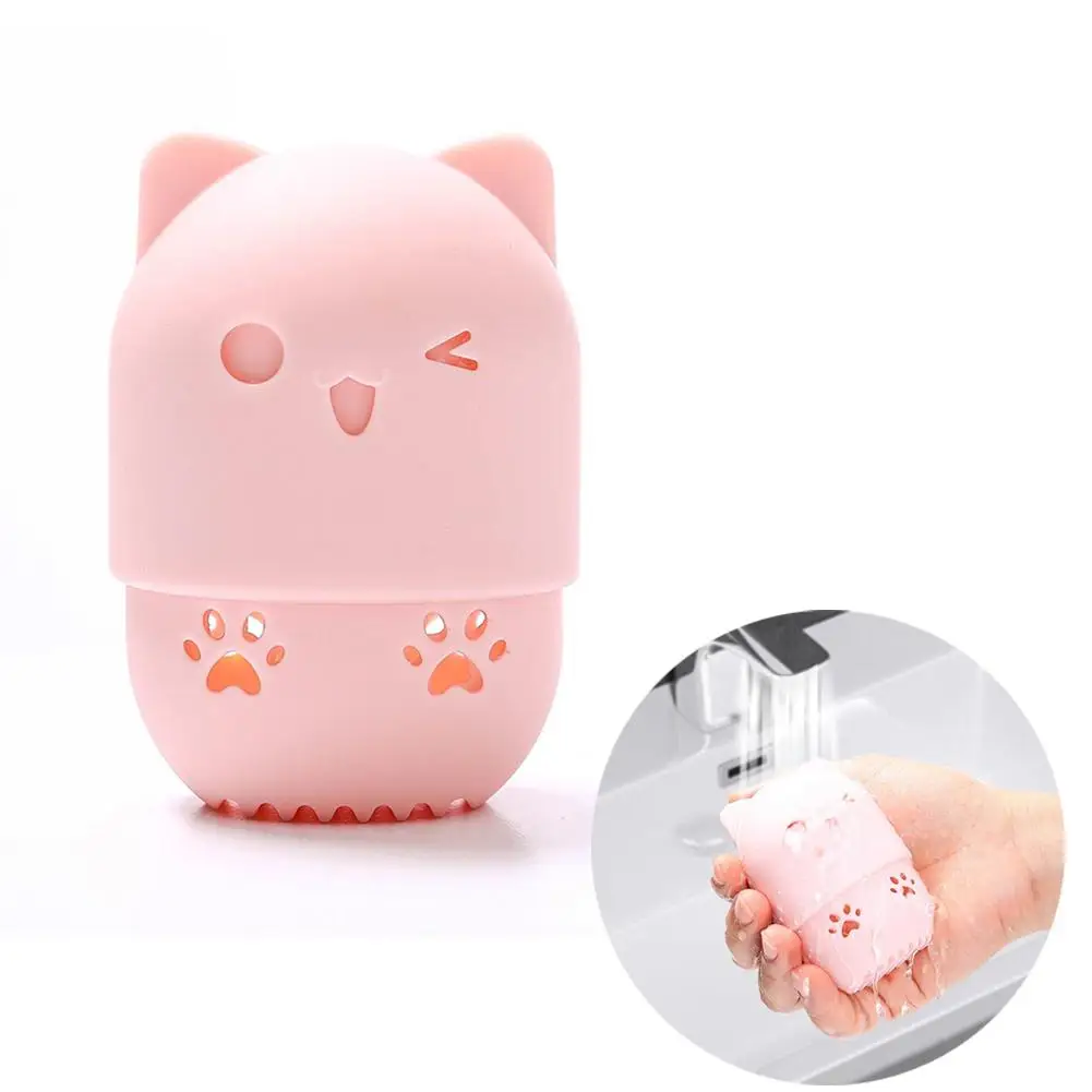 В форме кота силиконовый держатель спонжа для макияжа Potable косметический слоеный капсульный чехол для переноски красота Подставка для губк...