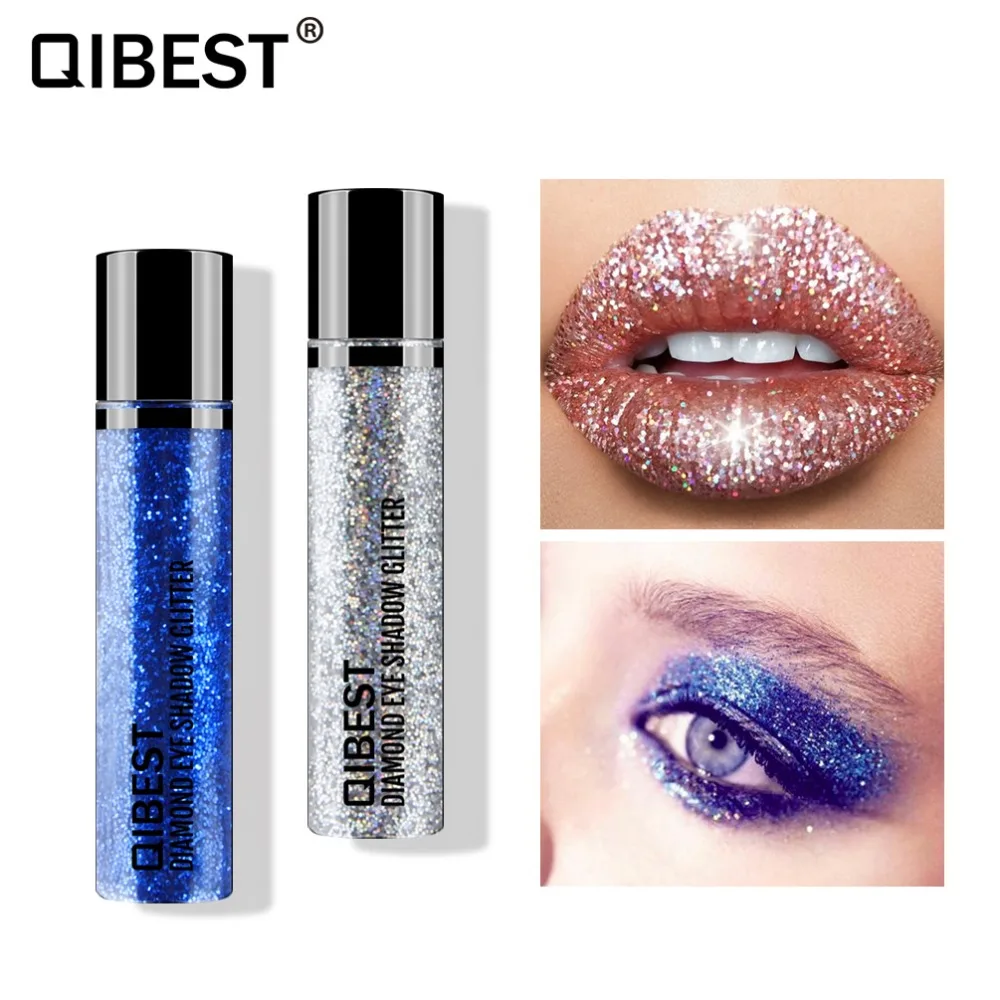 Qibest Алмазный Блеск тени для век Палитра один цвет золотой Синий Серебряный цвет легко носить водостойкие тяжелые металлические тени для ве...