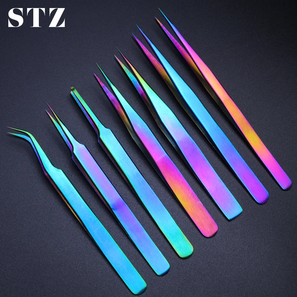 STZ Пинцет из нержавеющей стали для наращивания ресниц брови прямые + Изогнутые для удаления волос Косметика для макияжа инструменты для дизайна ногтей NB01-07