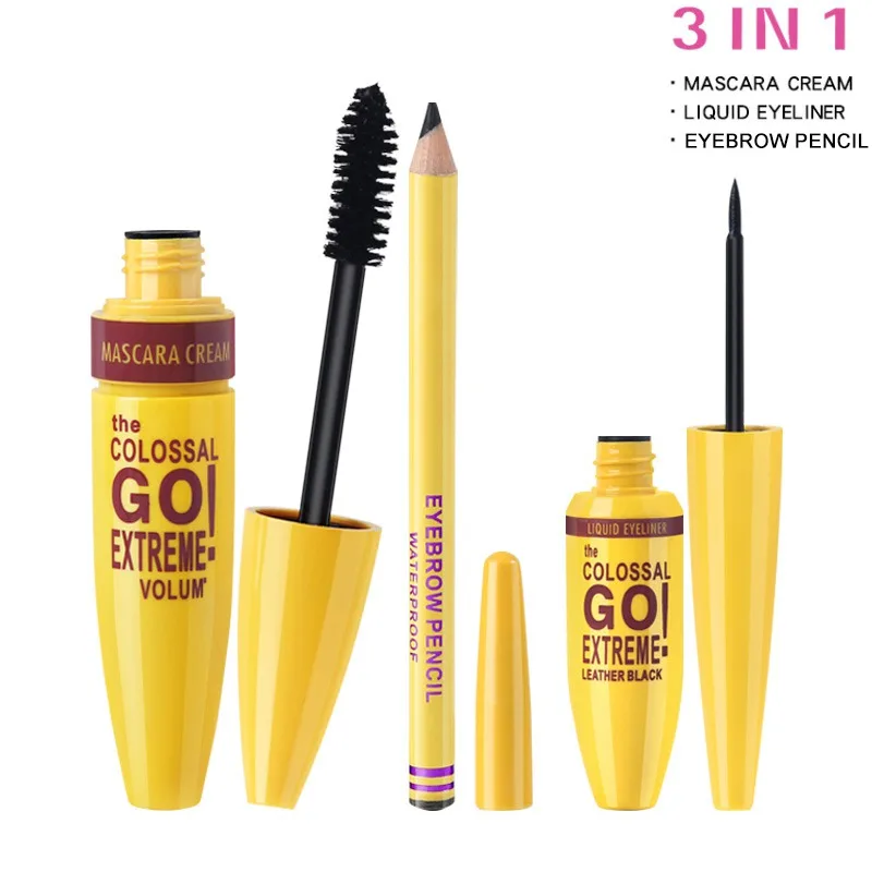 3 в 1 Набор для макияжа глаз, долговечный водонепроницаемый набор для макияжа, de maquiagem подводка для глаз, Удлиняющая Тушь для ресниц, ультра тонкая бровь