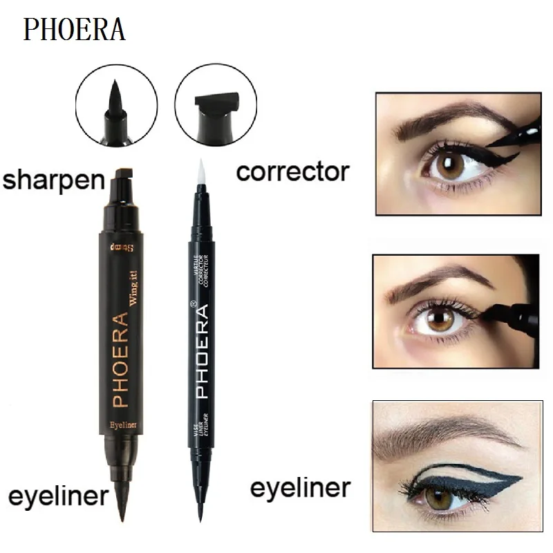 PHOERA 2 в 1 жидкая чёрная подводка для глаз + штамп водостойкие Comestics прочного синий подводка для глаз коррекция косметические карандаши TSLM1