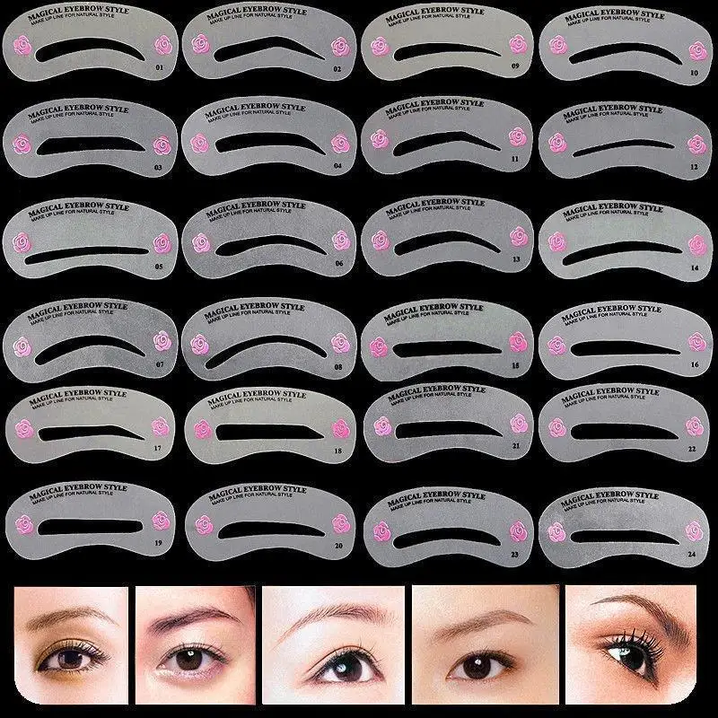BearPaw 24 шт. стилей комплект Pro многоразовые для бровей Трафареты модные трафареты для создания формы бровей Уход за лошадьми комплект макияж ...