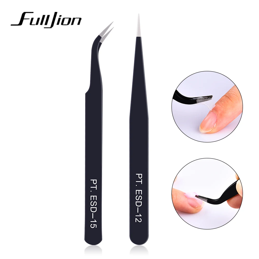 Fulljion 2 шт антистатические из Нержавеющей Стали Изогнутый прямые ресницы кончик кусачки для бровей Пинцет для наращивания ресниц дизайн ног...