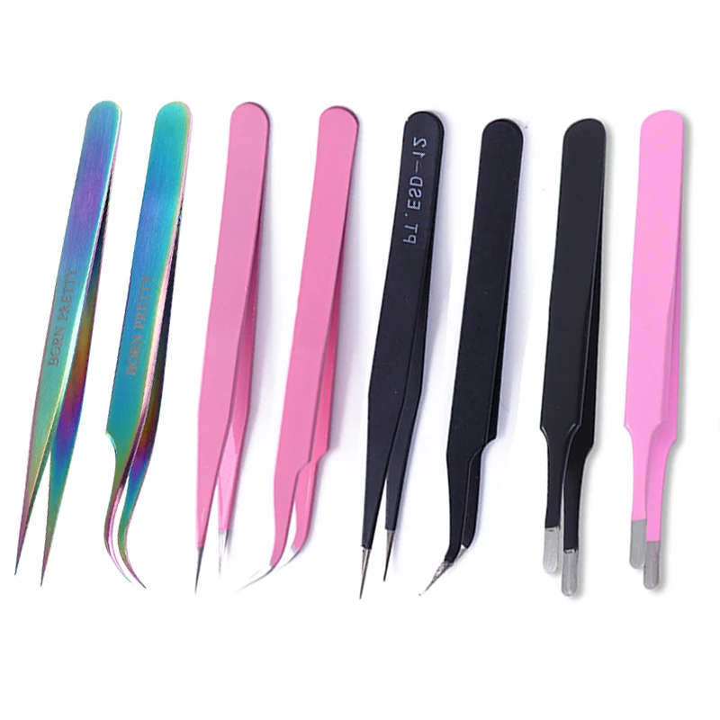 Прямой Изогнутый пинцет из нержавеющей стали наклейки для ногтей аппликатор для стразов макияж глаз инструмент для дизайна ногтей 1 шт.