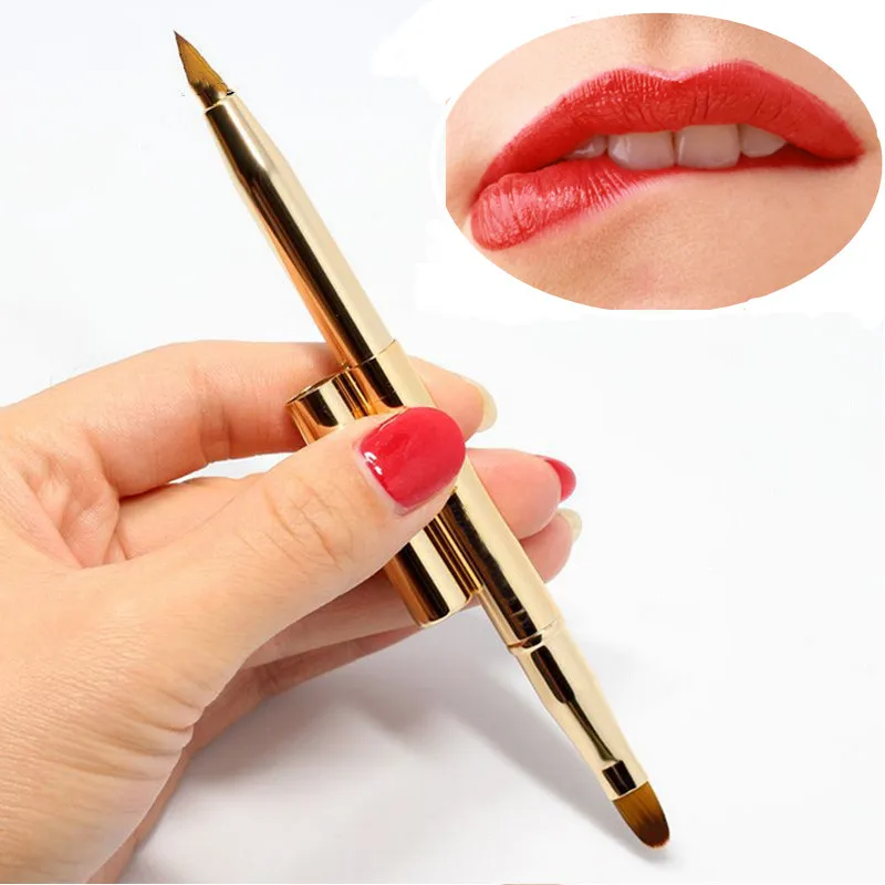 Металлическая профессиональная двухголовая Кисть для макияжа, выдвижная кисть для губ, кисть для основы, макияж, регулируемый инструмент, выдвижная помада, кисть