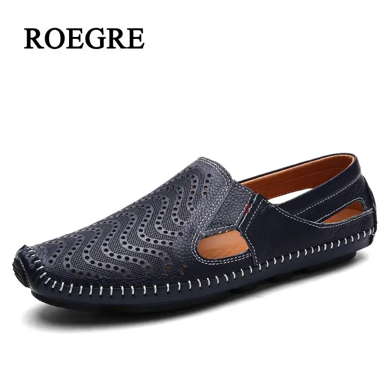 Летние мужские туфли 2018 Большие размеры 38-47casual сандалии удобная обувь для вождения из натуральная кожа разделения кожи для мужчин