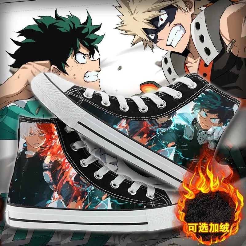 WHOHOLL/парусиновая обувь с принтом из мультфильма «Мой герой»; бархатная обувь для мужчин и женщин; повседневная обувь унисекс; Студенческая обувь с рисунком из японского аниме