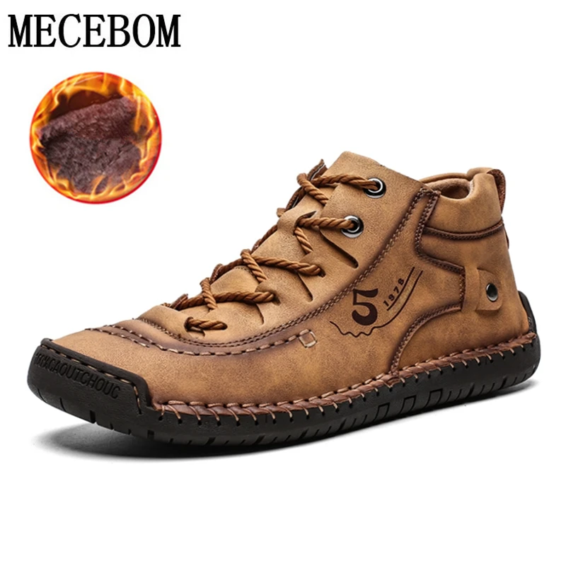 Мужские зимние ботинки, теплая кожаная повседневная обувь на мягкой подошве, удобные мужские ботинки на плоской подошве для вождения, большие размеры 38-48, 2019