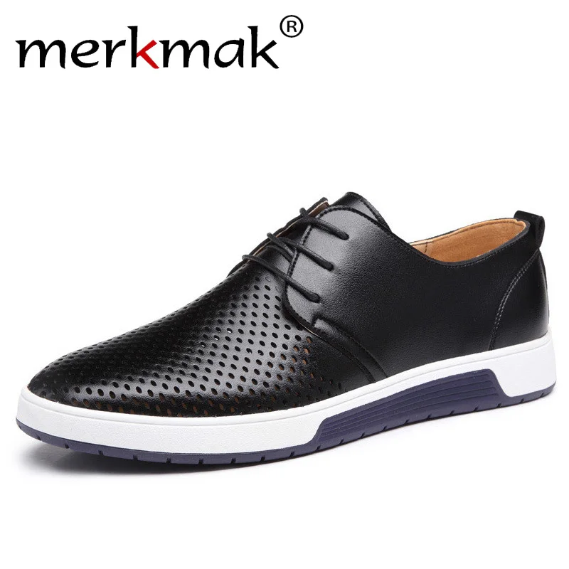 Прямая поставка; Мужская повседневная обувь; Кожаная Летняя Роскошная дышащая обувь с отверстиями