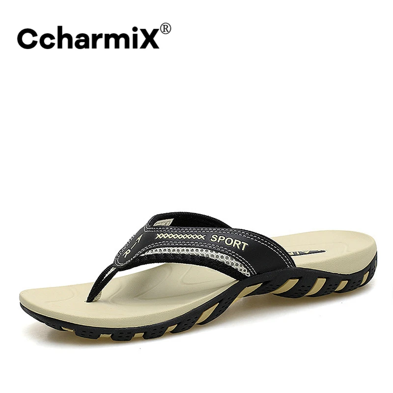 CcharmiX/Летняя мужская обувь 2020; Модные мужские вьетнамки; Модные Нескользящие кожаные мужские повседневные туфли; Классические массажные пляжные шлепанцы