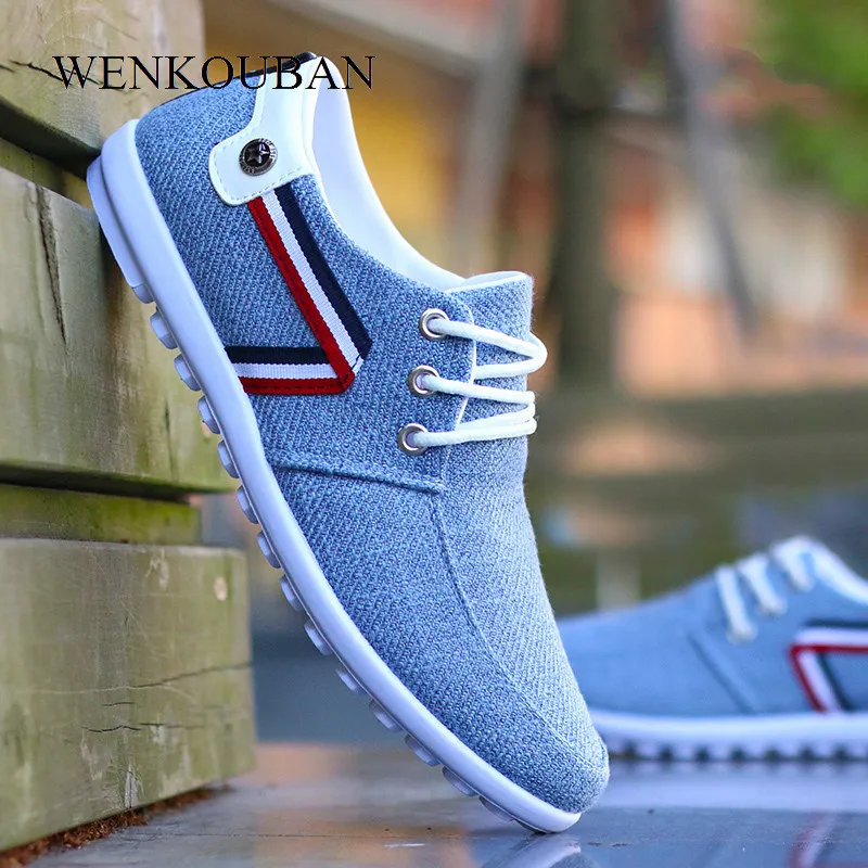 Летняя повседневная обувь мужские джинсовые парусиновые кроссовки модные мужские кроссовки Tenis Masculino Adulto на плоской подошве со шнуровкой ...