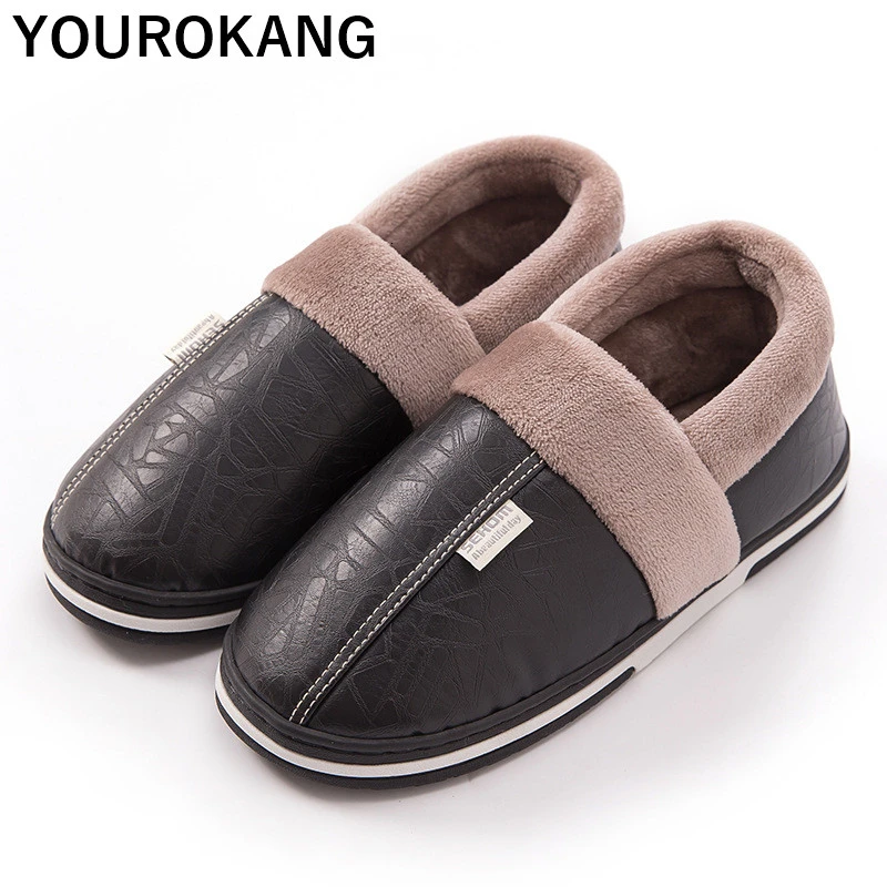 Мужские домашние тапочки из искусственной кожи; зимние теплые домашние плюшевые тапочки; пара обуви унисекс; мягкая обувь хлопковая обувь д...