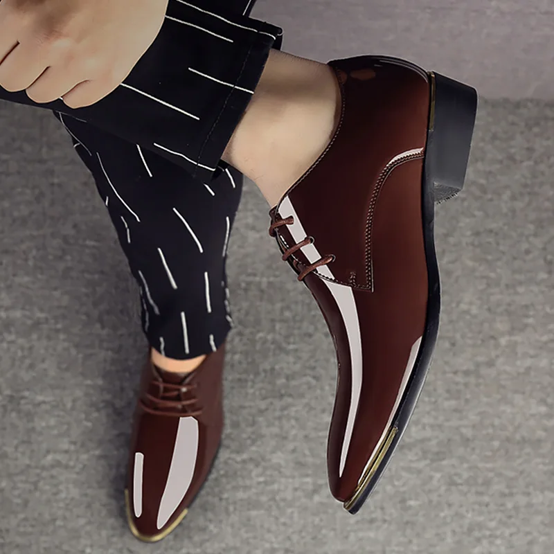 Размера плюс 45-48; из искусственной кожи обувь; мужские коричневые туфли с пряжкой на прочной подошве; мужские классические модные мужские деловые туфли в стиле пэчворк