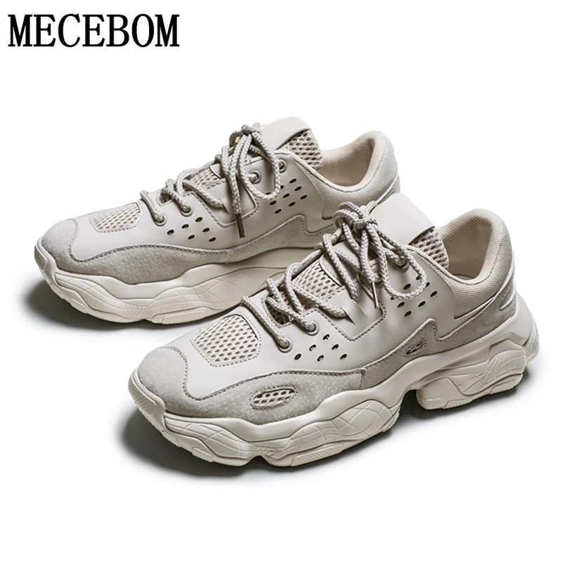 Новая модная мужская повседневная обувь, дышащая сетка + Pu искусственная кожа, толстая подошва, для папы, обувь для мужчин, на шнуровке, мужск...