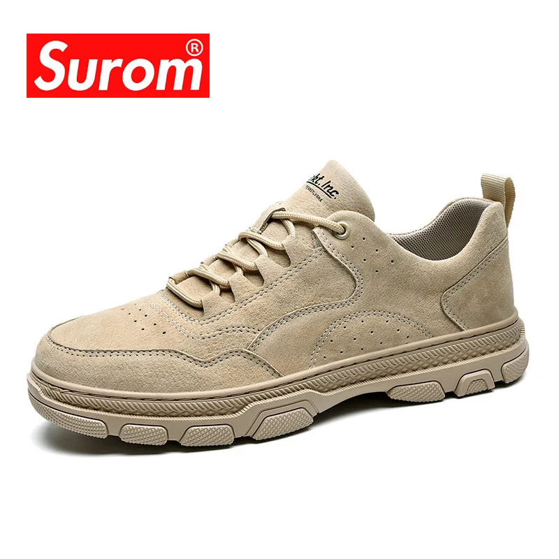 SUROM/Новая модная повседневная обувь из свиной замши; мужская кожаная обувь высокого качества; дышащая мягкая Нескользящая Мужская обувь для взрослых