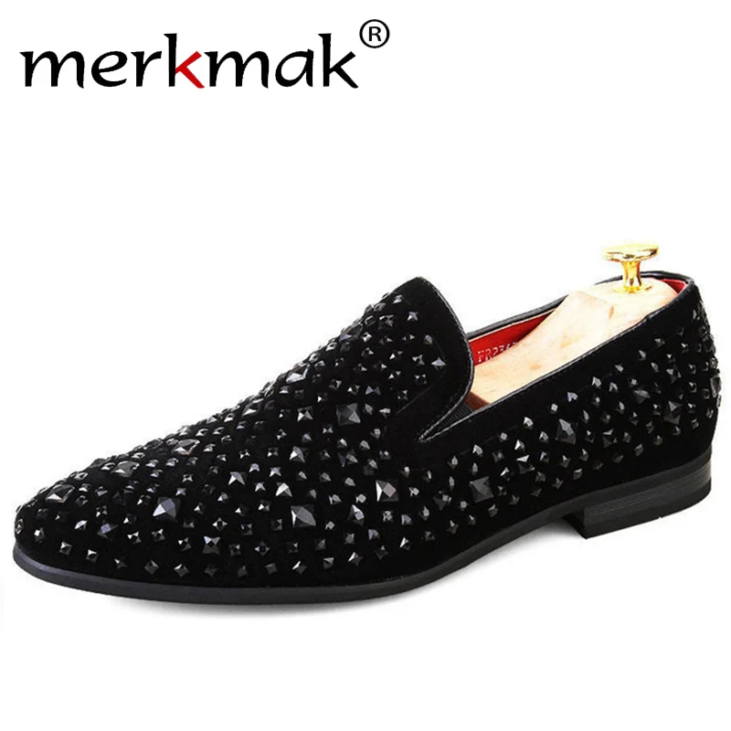Merkmak/мужские замшевые лоферы ручной работы, украшенные черными стразами, для свадебной вечеринки, мужская обувь, роскошные брендовые благор...