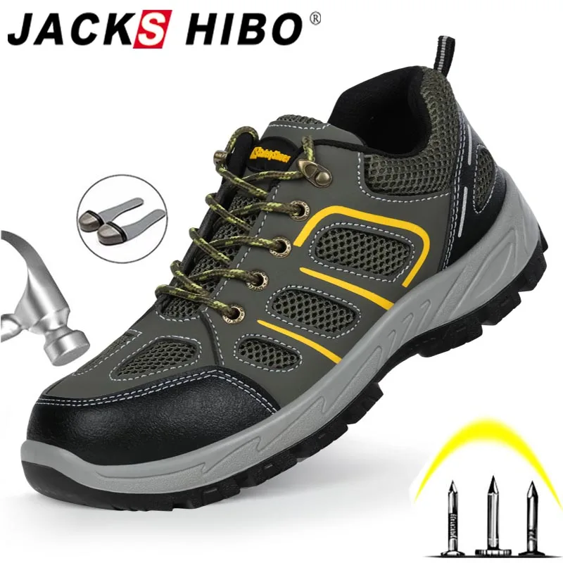 Мужские безопасные ботинки JACKSHIBO, дышащие ботинки со стальным носком, большие размеры