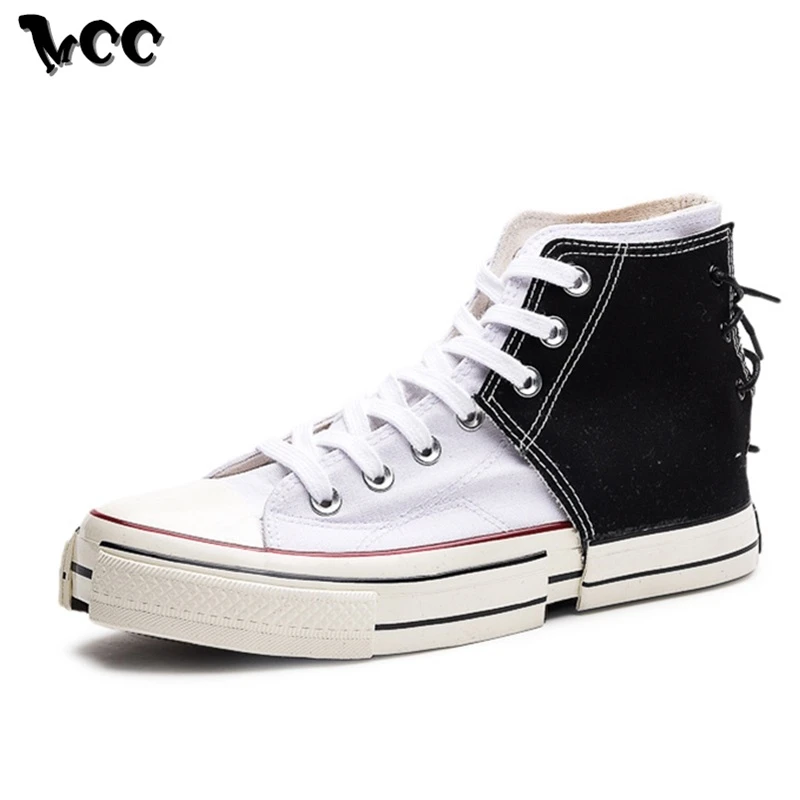 Новинка; Мужская парусиновая обувь с высоким берцем; кроссовки на шнуровке; унисекс; повседневная обувь; дизайн в стиле ретро; Стильная бела...