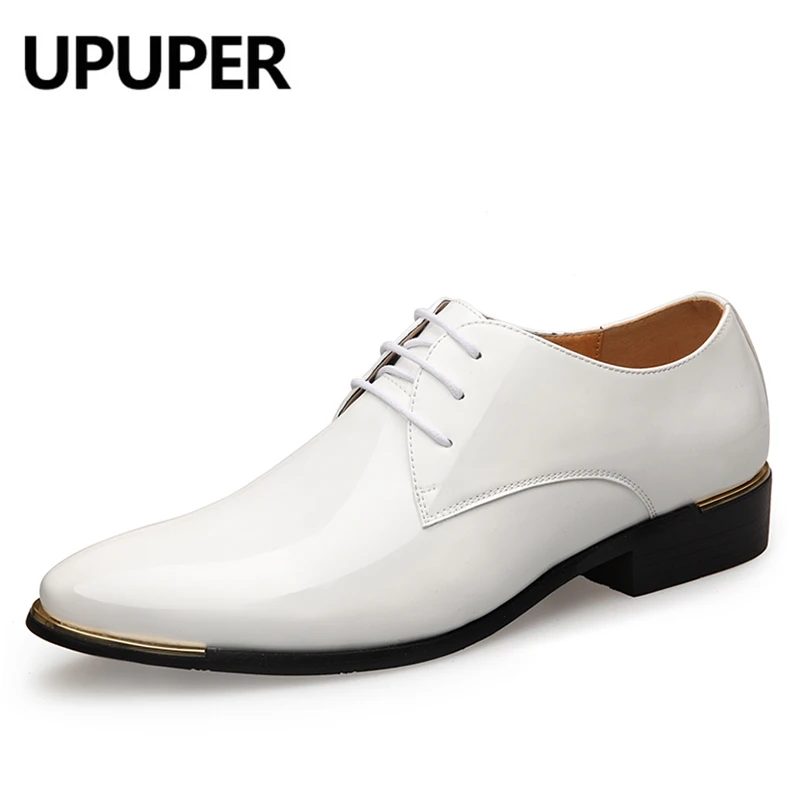 UPUPER/Большие размеры 38-48, Мужские модельные туфли из лакированной кожи для свадебной вечеринки, обувь для мужчин, белые, черные модные туфли-о...