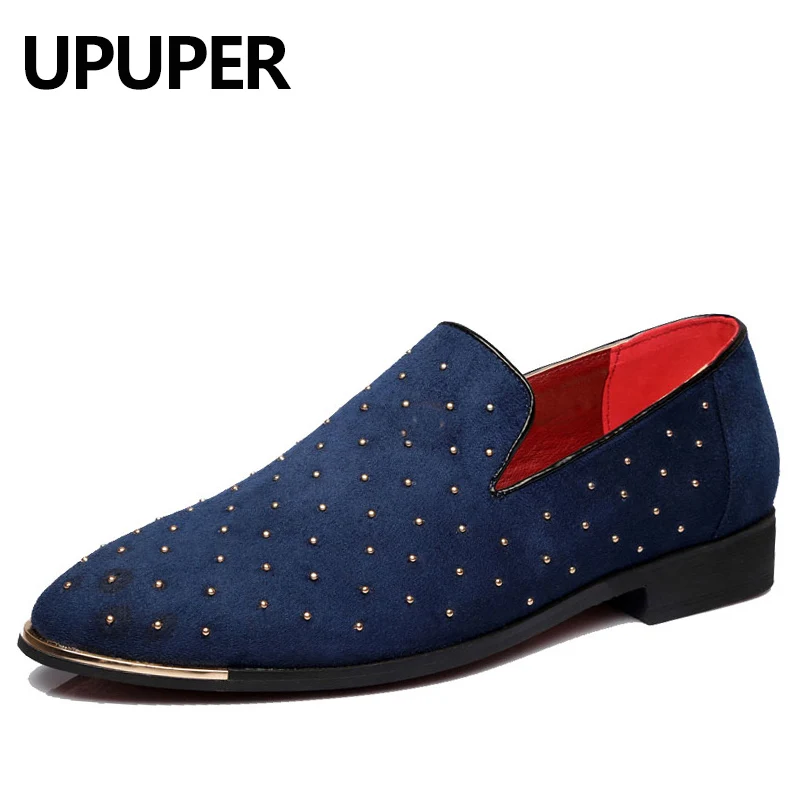 Размер: 38-48, мужские лоферы, Мокасины, синие, черные, украшенные заклепками, свадебные модельные туфли, 2018 г. модные весенние туфли-лодочки из ...