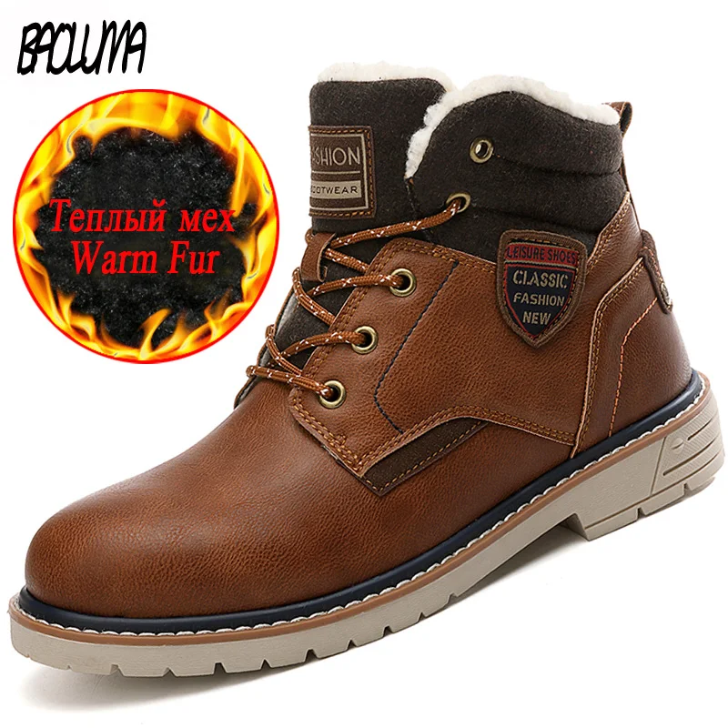 Классические мужские зимние ботинки теплые мужские ботильоны из толстого кашемира уличные модные мужские зимние кроссовки мужские мотоци...