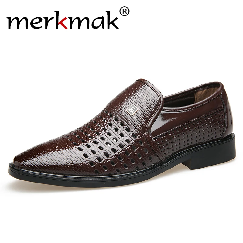 Мужские кожаные туфли merkmak, винтажные сандалии без шнуровки из натуральной кожи с мягкой подошвой, с перфоратором, 38-44, лето 2019