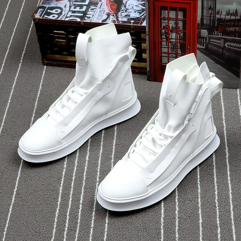 Брендовая мужская модная повседневная обувь ботильоны мужская обувь с высоким берцем из искусственной кожи на толстой подошве обувь для от...