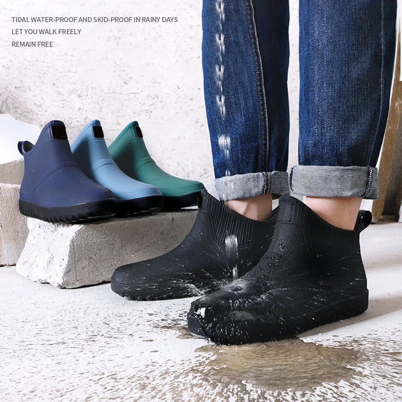Мужские резиновые галоши, без шнуровки, водонепроницаемые, на низком каблуке, из ПВХ, резиновые сапоги для работы