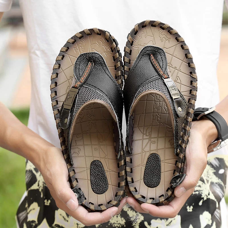 JICHI/Роскошные Брендовые мужские вьетнамки, шлепанцы из натуральной кожи, летние модные пляжные сандалии, обувь для мужчин, большой размер 48, 2019