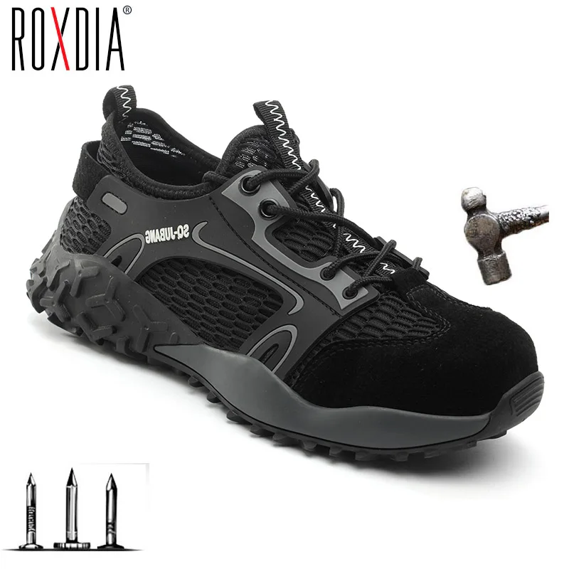 Прямая поставка; Рабочая обувь со стальным носком; Мужская и женская летняя Сверхлегкая обувь из свиной кожи и сетчатого материала; RXM176