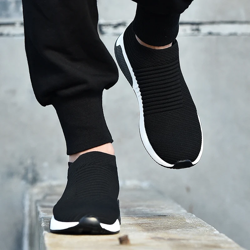 2019 Летние черные кроссовки с плетением, Мужские дышащие теннисные кроссовки без шнуровки, повседневные кроссовки для взрослых, chaussure homme ...