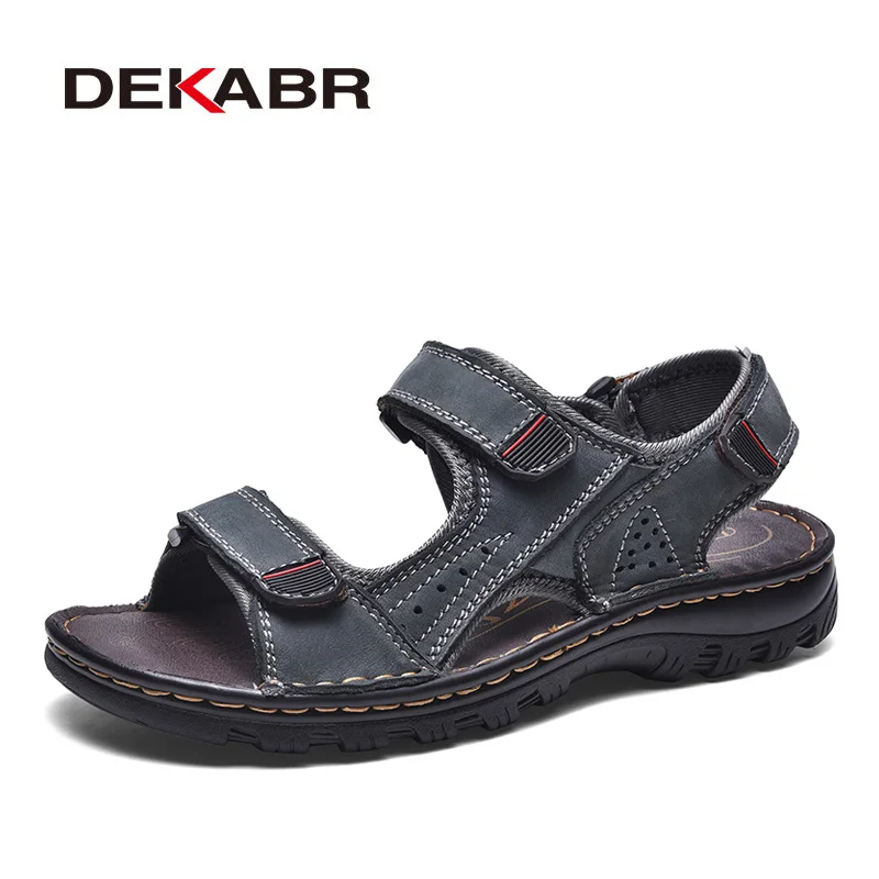 Мужские сандалии DEKABR, Летние Повседневные Дышащие сандалии из натуральной кожи, большие размеры 38-47