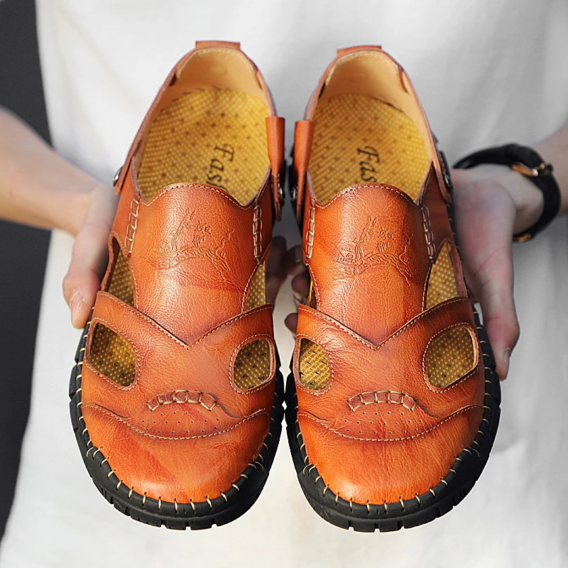 Мужские сандалии из натуральной кожи мужские уличные повседневные мужские кожаные сандалии для мужчин пляжные обувь римская обувь Большие...