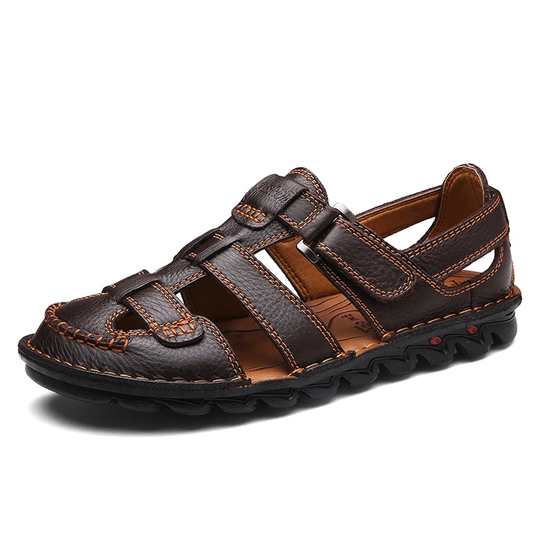 Мужские сандалии из натуральной кожи, модная летняя обувь, мужские шлепанцы, дышащие мужские сандалии, повседневная кожаная обувь