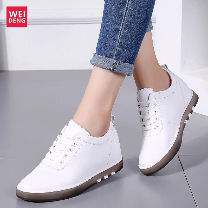 WeiDeng/Повседневные ботильоны из натуральной кожи на плоской подошве 6 см; женские ботинки на платформе; женские лоферы для отдыха; легкие мягк...