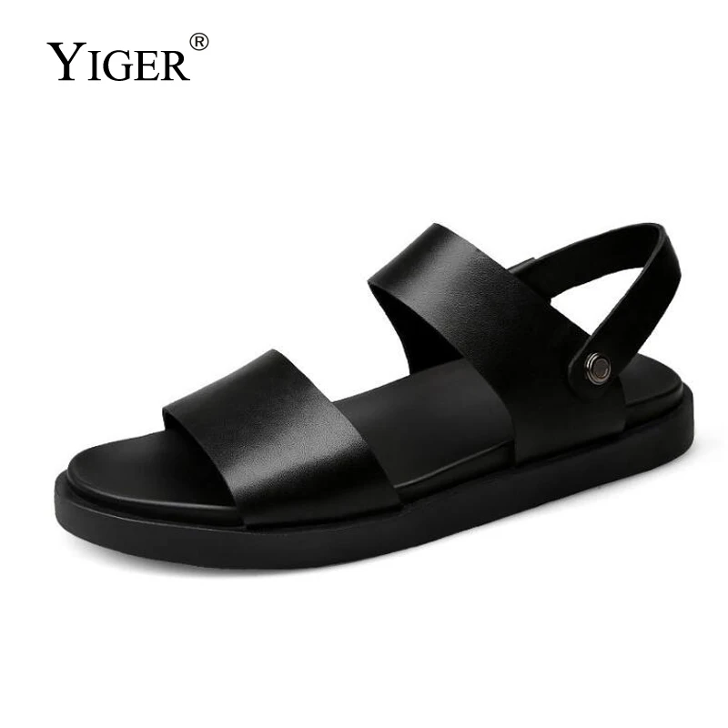 YIGER/Новинка; мужские сандалии; летние мужские шлепанцы из натуральной кожи; повседневные мужские пляжные сандалии и шлепанцы; большие разме...