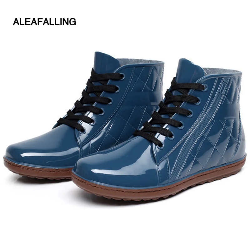 Aleafalling Мода 2017 Мужские резиновые сапоги резиновые на шнуровке мужские полусапоги Водонепроницаемый Повседневное комфорт Gentl Для мужчин для...
