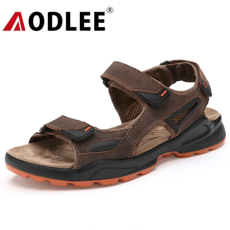 Мужские пляжные сандалии; летняя модная мужская обувь; удобные нескользящие сандалии больших размеров; легкие сандалии из натуральной кожи; Прямая поставка; AODLEE