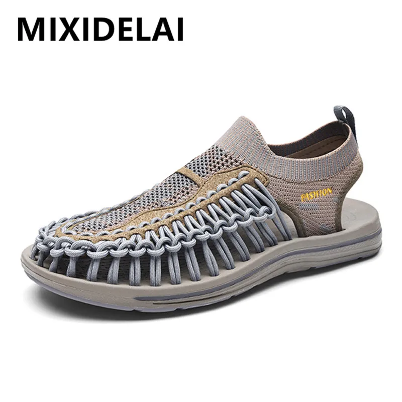 Летние мужские сандалии; Пляжная обувь ручной работы; Тканевый дизайн; Дышащая Повседневная пляжная обувь; Легкие открытые сандалии с мягкой подошвой