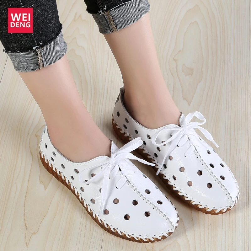 WeiDeng/женская повседневная обувь из 100% натуральной кожи; удобная и мягкая дышащая обувь на мягкой подошве со шнуровкой