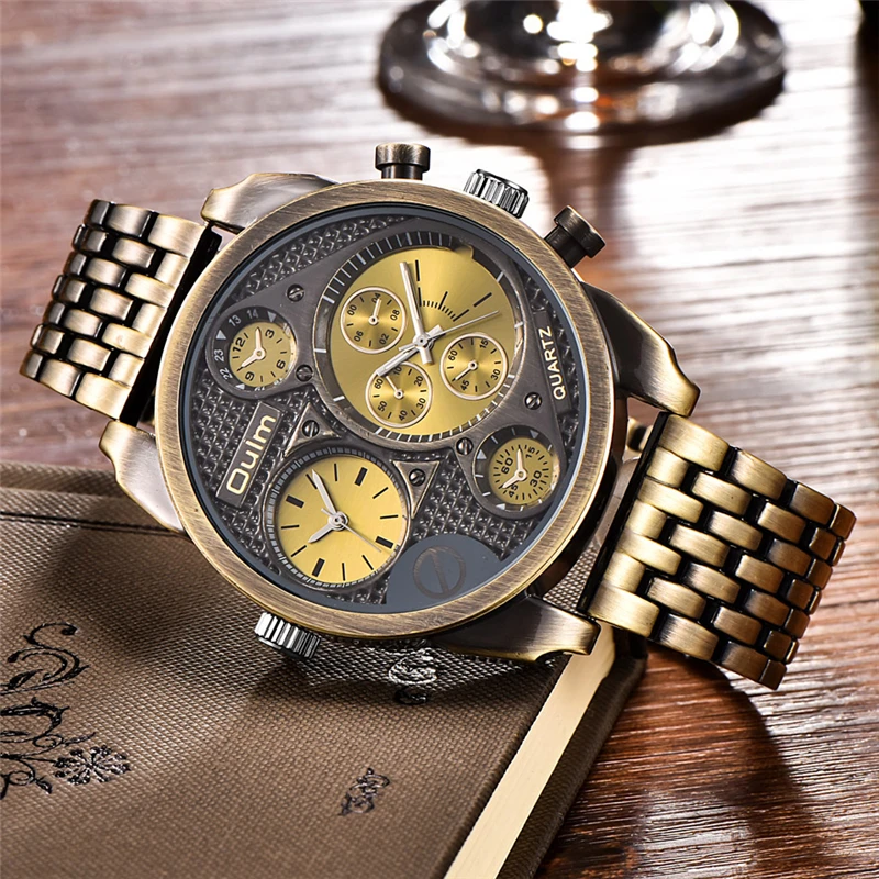 Oulm индивидуальность большие часы Человек Элитный бренд кварцевые наручные часы золото для мужчин полный сталь часы Военная Униформа Мужск...
