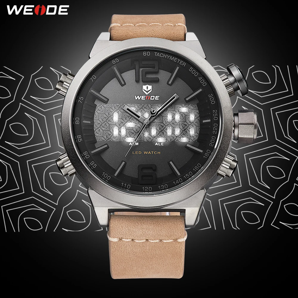 WEIDE для мужчин спортивные часы Топ Элитный бренд светодиодный цифровой кожаный ремешок Военная Униформа кварцевые наручные часы relogio