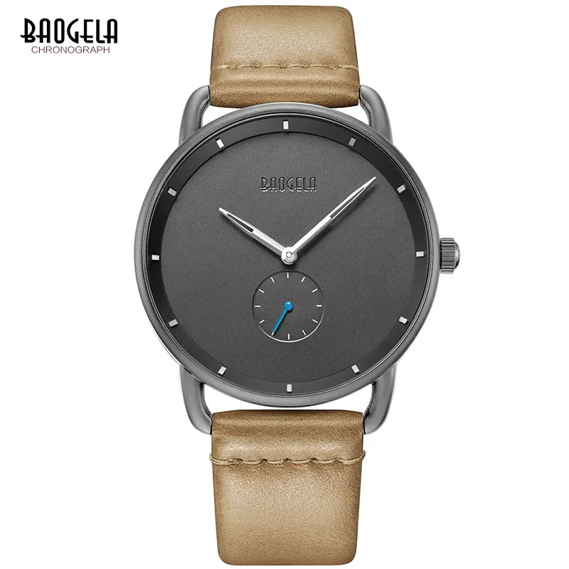 BAOGELA Мужские Простые кварцевые часы премиум класса повседневные часы с кожаным ремешком минимализм водонепроницаемые наручные часы для мужчин 1806 светло-коричневый