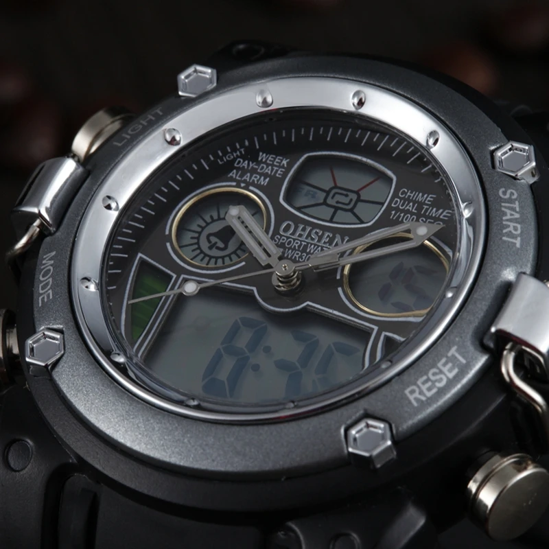 OHSEN мужские спортивные наручные часы кварцевые наручные часы цифровой дисплей Кварцевые часы мужские военные часы задняя подсветка Резина