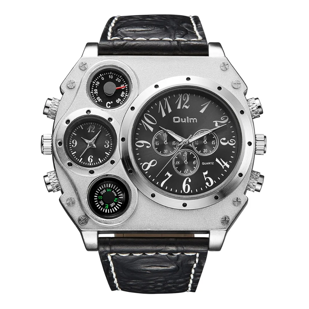 Oulm 1349 Для мужчин двойной двигаться Для мужчин t армейские спортивные часы с компасом и украшение-термометр большой Размеры 5,8 см Диаметр