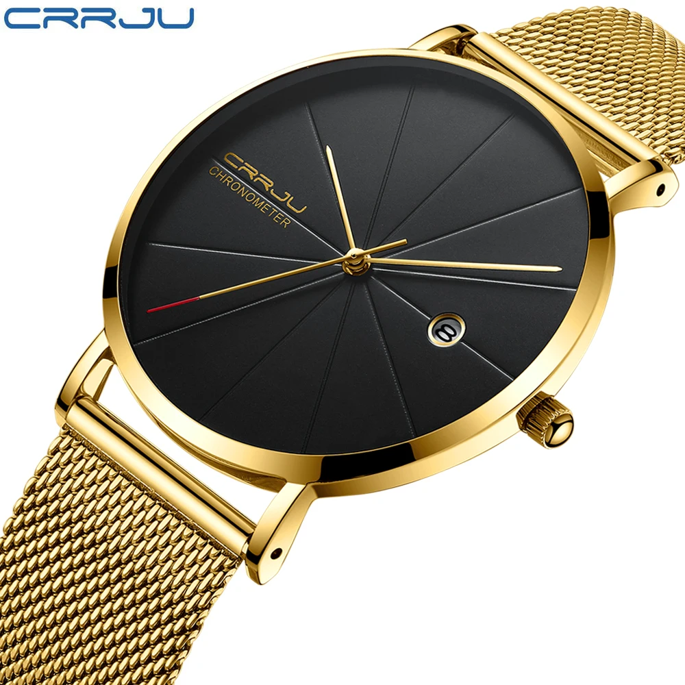 Роскошные CRRJU часовой бренд Для мужчин модные Повседневное кварцевые Для мужчин часы ультра тонкий Дизайн Водонепроницаемый спортивные ча...