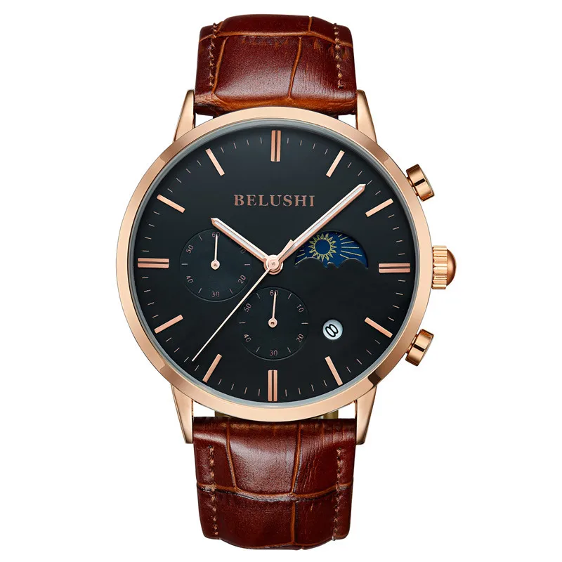 Модные Роскошные мужские часы, повседневный кожаный ремешок, фаза Луны, Reloj Mujer, мужские часы, кварцевые аналоговые часы для мужчин, Montre Homme