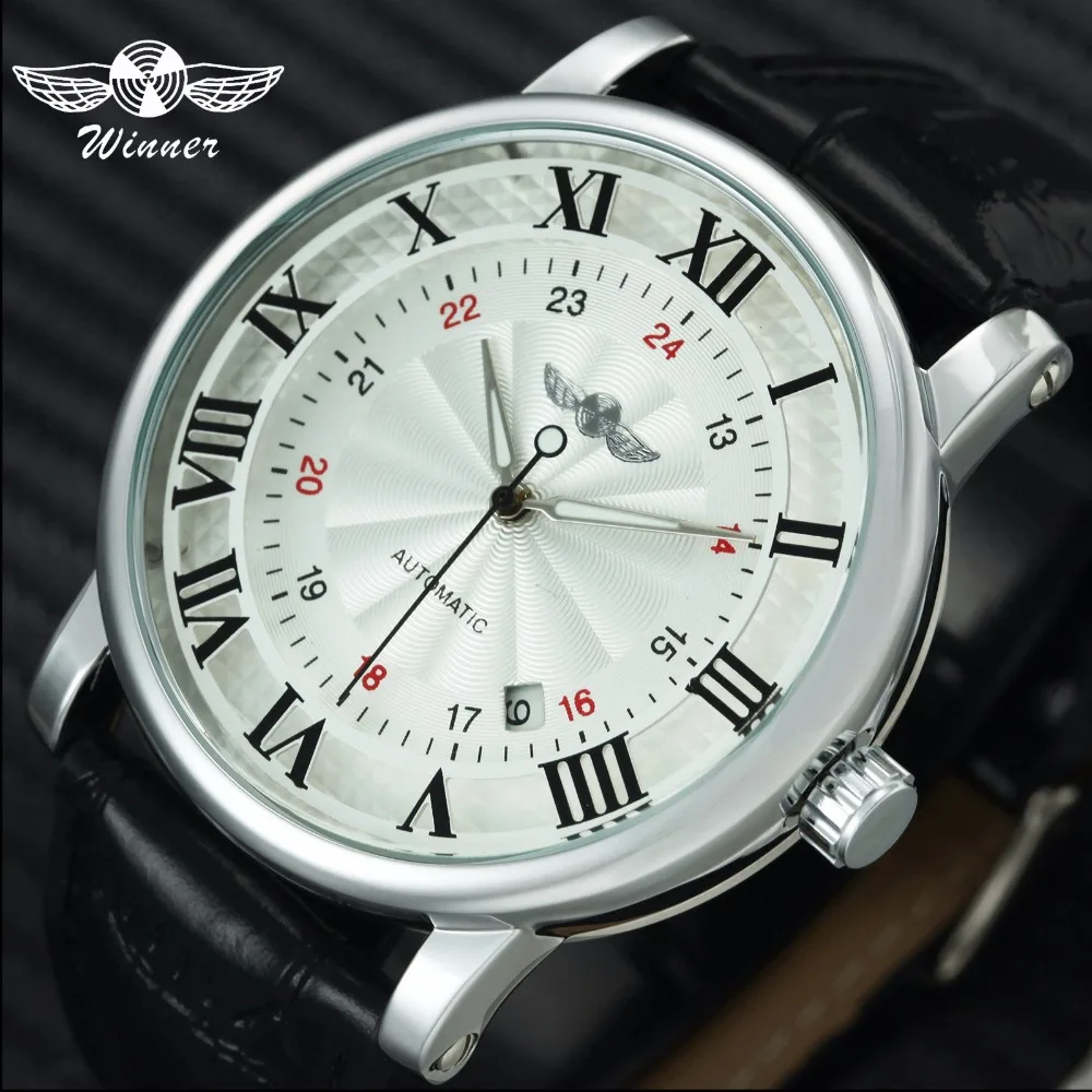 Победитель лучший бренд класса люкс Для мужчин Авто механические часы белый циферблат кожаный ремешок двойной Digital Date Дисплей минималистск...