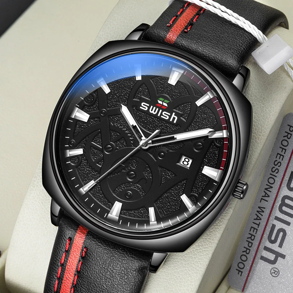 SWISH часы для мужчин люксовый бренд для мужчин бизнес кожаный ремешок часы кварцевые часы мужские повседневные военные водонепроницаемые relogio masculino